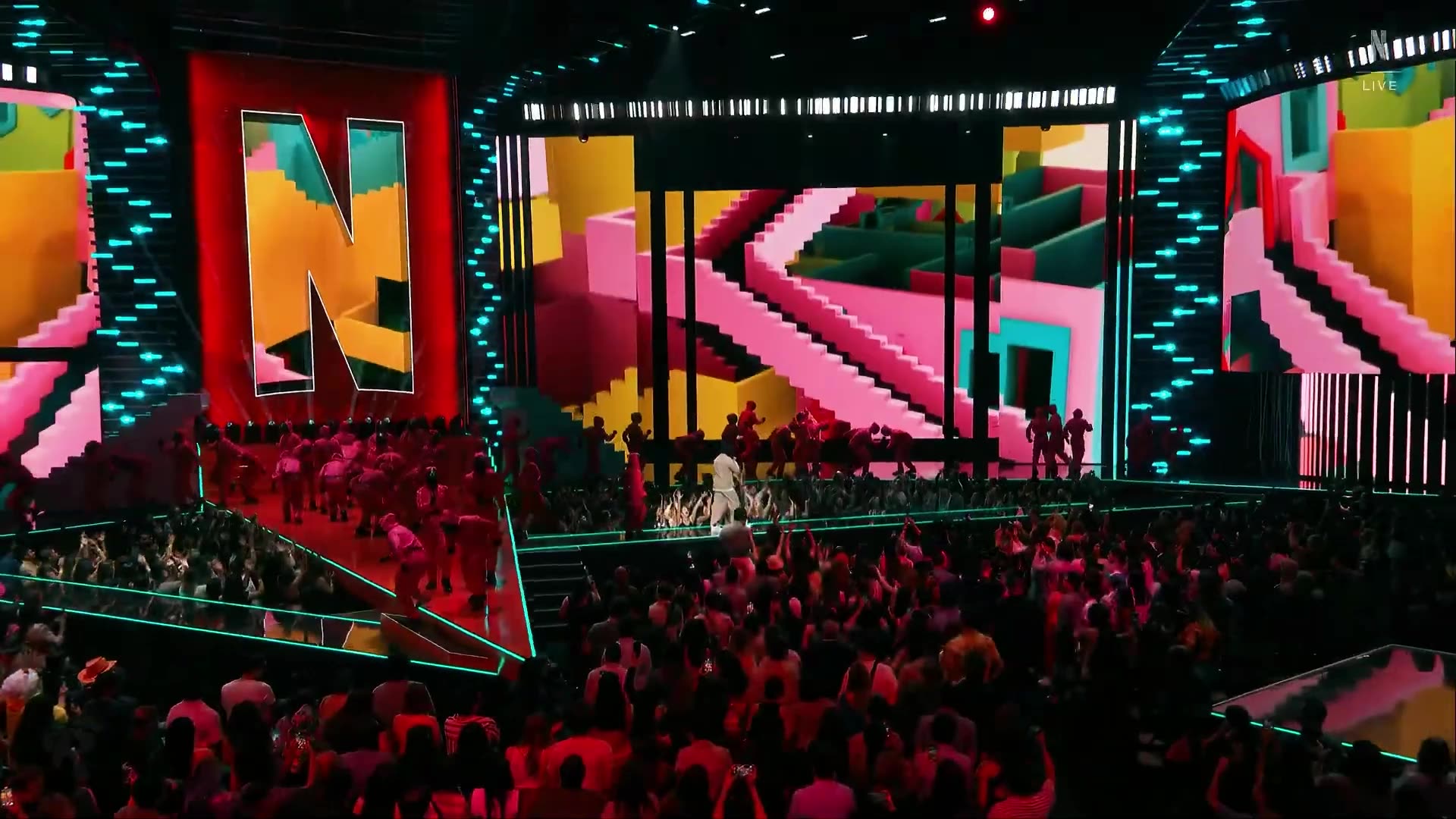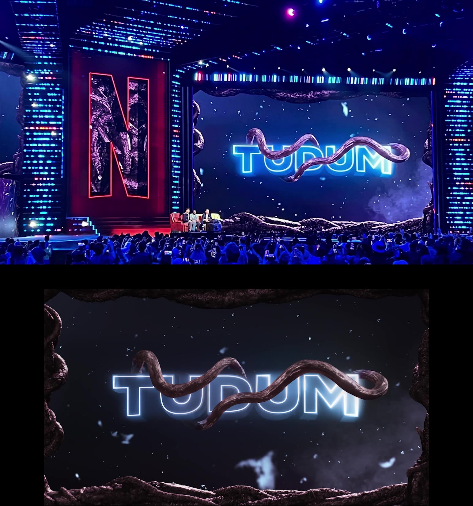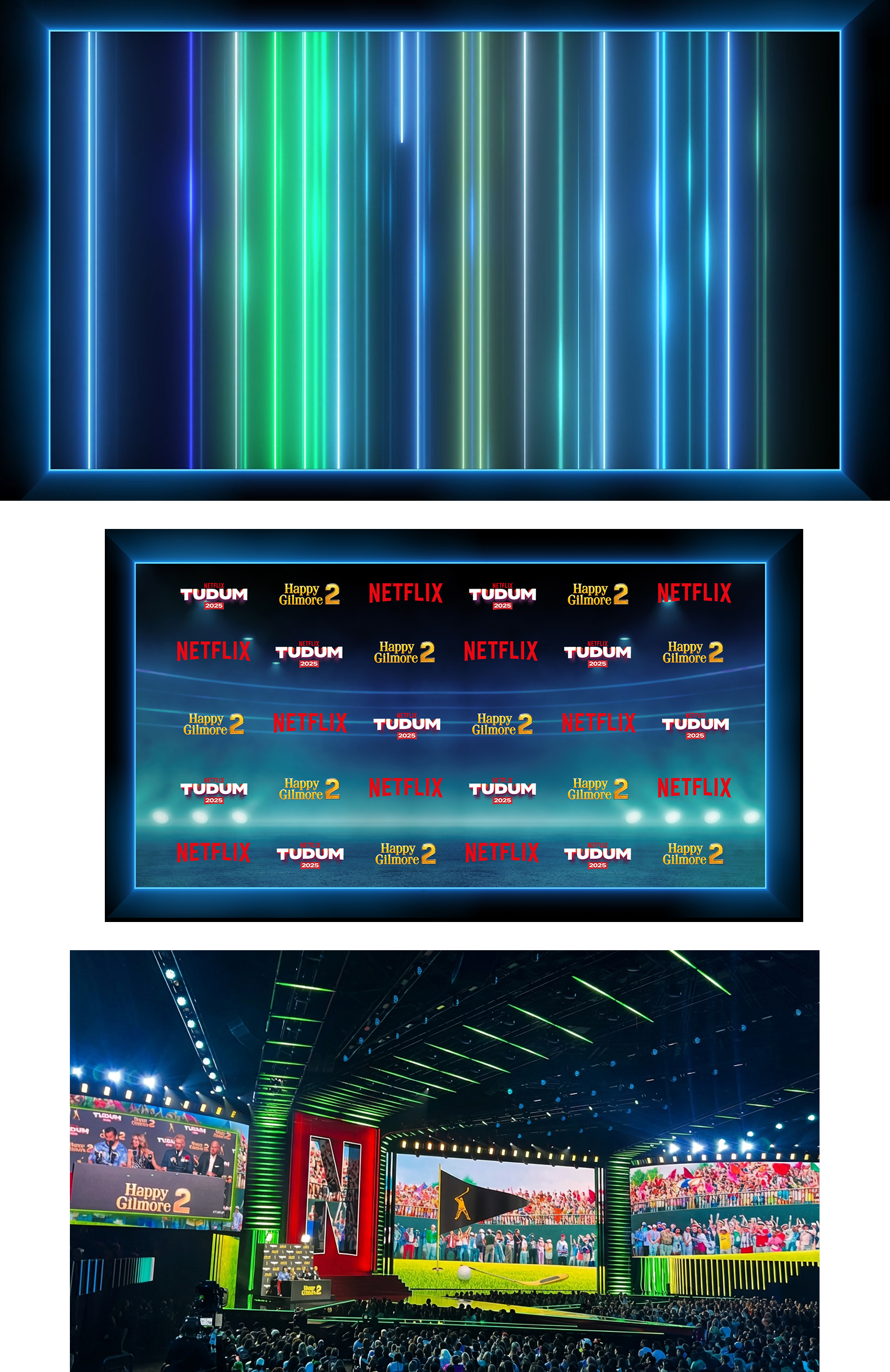 On the occasion of Netflix’s TUDUM 2025 event, Silent Partners Studio designed the broadcast graphics and two performance visuals. Several environments were created to reflect the aesthetics of Squid Game, including the performance by Hanumankind, as well as Frankenstein, Wednesday featuring performance by Lady Gaga, One Piece, Wake Up Dead Man, Happy Gilmore, The RIP, and Stranger Things. The annual event took place at the Kia Forum in Los Angeles on May 31, 2025.